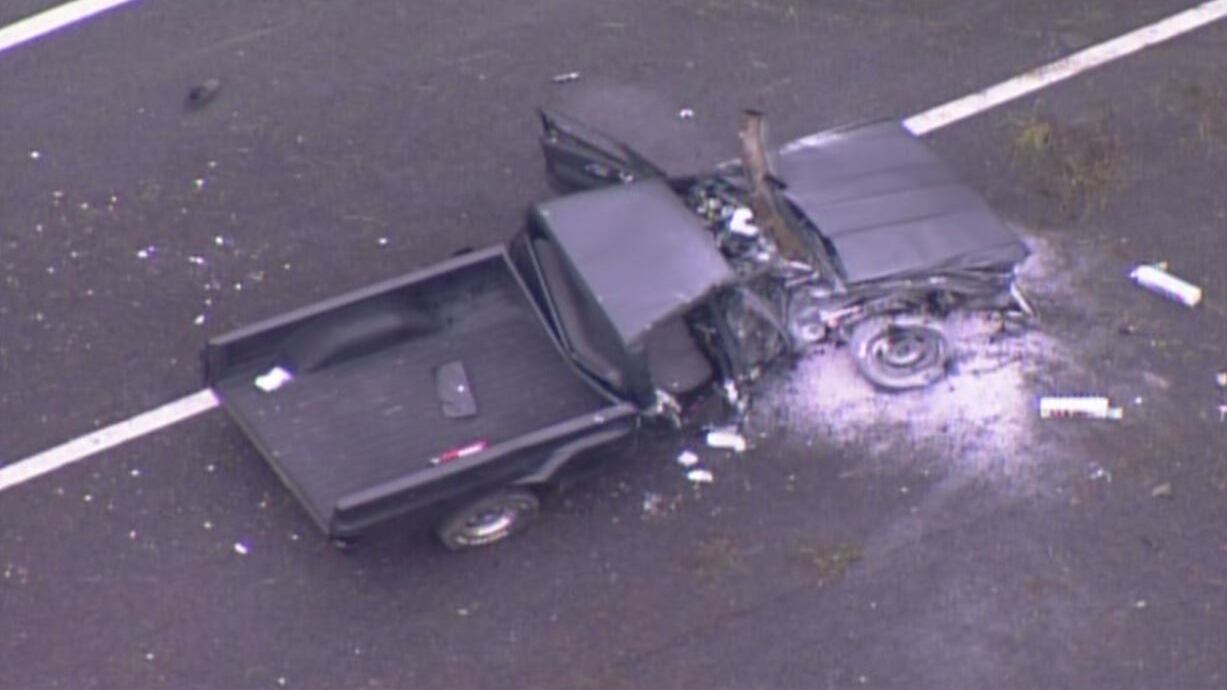 A Dodge van and Durango hit the truck and someone inside the truck was ejected, officials said.