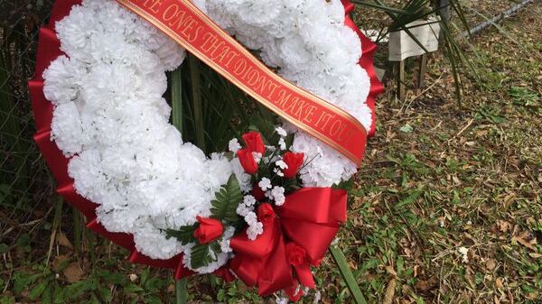 A memorial for the woman lies against a fence in the yard of 54-year-old Richard Tillis’ home.