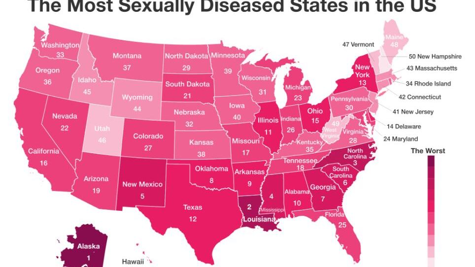 BackgroundChecks.org used Centers of Disease Control and Prevention data on STDs, state and county health agency data and social media surveys to create a list of the best and worst states for STDs in America.