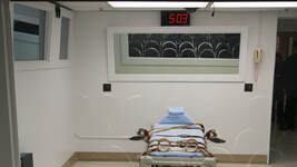 Below is a photo of what the chamber looks like. Asay slightly sat up and looked out when the curtain went up. There are 3 men in the room with him.