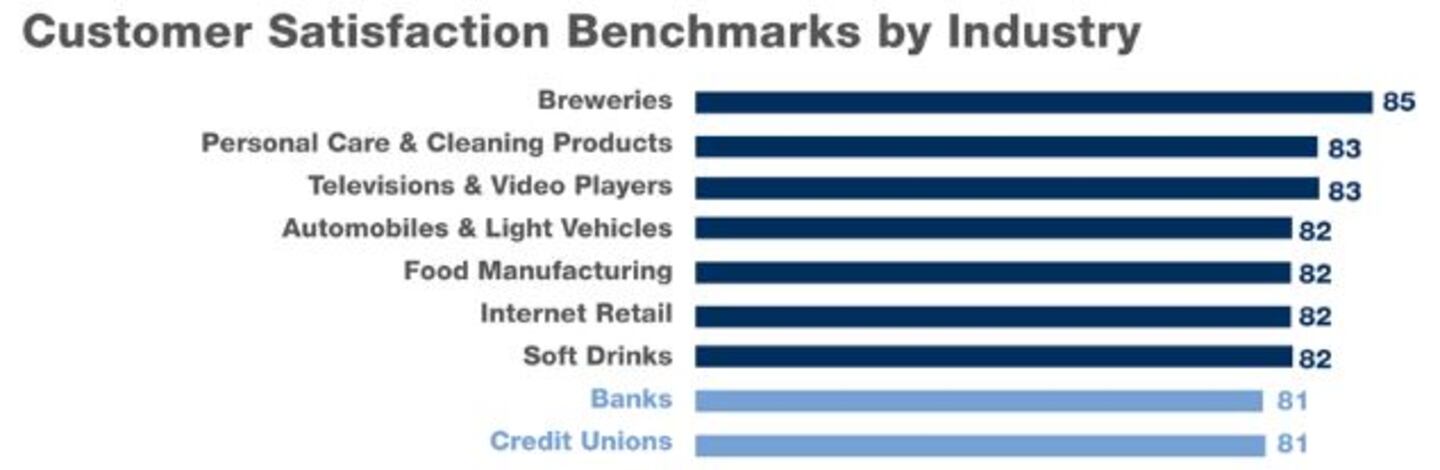 That has leveled the playing field between banks and credit unions. Looking at the banking sector as a whole, both banks and credit unions now score an 81 out of a possible 100 points in customer satisfaction.