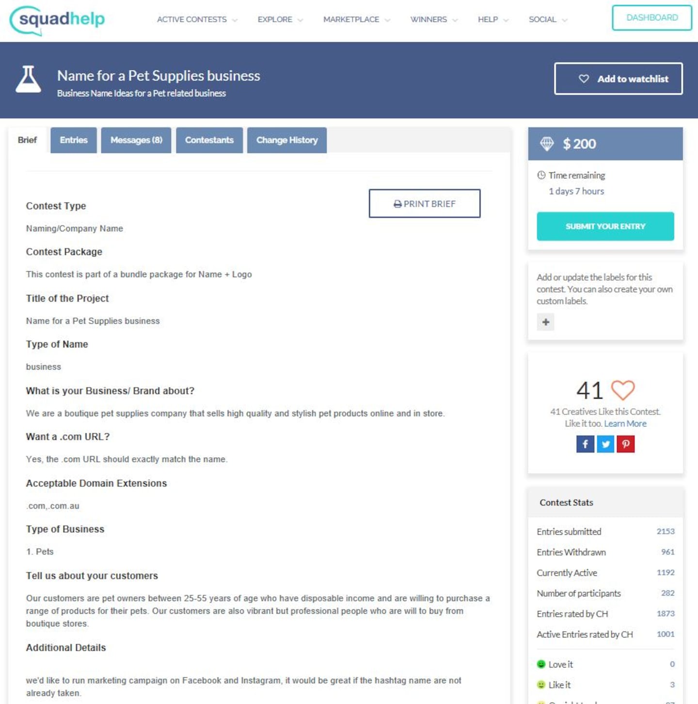 For just a couple hundred bucks, a new business can submit a proposal to SquadHelp containing the details of their business plan and a request for crowdsourced branding ideas.