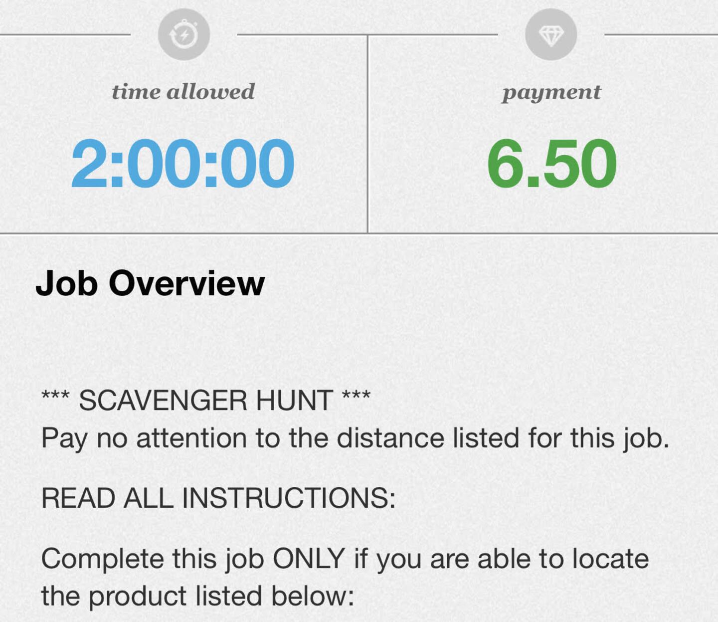 - Scavenger Hunt: These jobs oftentimes require you to transcribe UPC labels on products. If you already have the item at home, that works too.