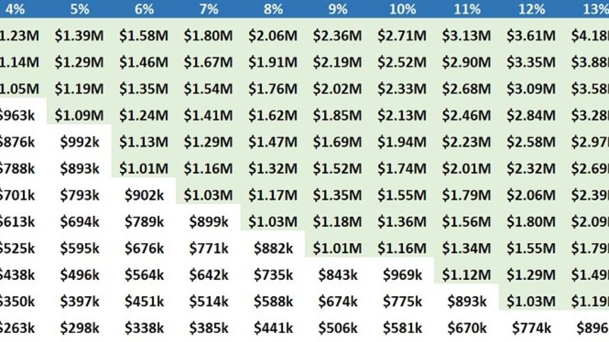"I made the matrix inflation-adjusted, using an assumption of 2.5% annual currency inflation over the period," Alden wrote on her blog. "So when you see a million dollars on the table, it means a million dollars in terms of today's purchasing power rather than like, the less-valuable inflated Monopoly-money of the future."