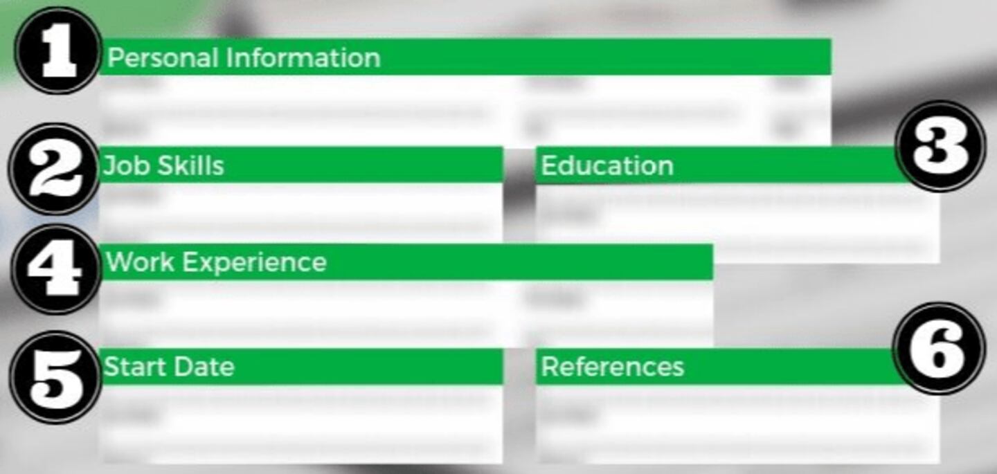 Below, you can see that the numbered sections are what you’ll find on a typical job application. In this article, we’re going to show you how to fill out a job application the right way, step by step, so you can get hired.