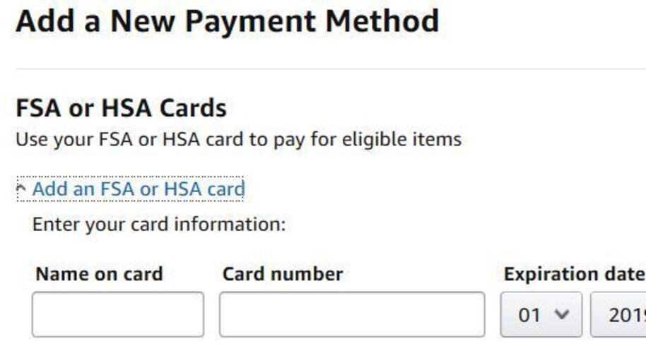 1. Add your FSA or HSA card as a payment option to your Amazon account. Click here to get started.
