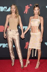 Gigi Hadid, left, and Bella Hadid arrive at the MTV Video Music Awards at the Prudential Center on Monday, Aug. 26, 2019, in Newark, N.J. (Photo by Evan Agostini/Invision/AP)