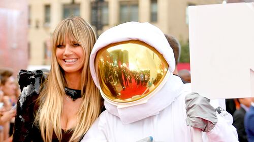 NEWARK, NEW JERSEY - AUGUST 26: Heidi Klum and MTV Moon Man attend the 2019 MTV Video Music Awards at Prudential Center on August 26, 2019 in Newark, New Jersey. (Photo by Dia Dipasupil/Getty Images for MTV)