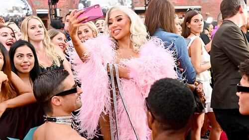 NEWARK, NEW JERSEY - AUGUST 26: Taylor Swift takes a selfie with a fan during the 2019 MTV Video Music Awards at Prudential Center on August 26, 2019 in Newark, New Jersey. (Photo by Astrid Stawiarz/Getty Images for MTV)