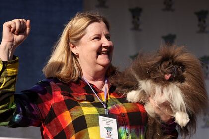 World’s ugliest dog 2024 PETALUMA, CALIFORNIA - JUNE 21: Ann Lewis holds her dog Wild Thang after winning the World's Ugliest Dog contest at the Marin-Sonoma County Fair on June 21, 2024 in Petaluma, California. A Pekingese dog named Wild Thang won the 34th annual World's Ugliest Dog contest and was awarded $5,000. (Photo by Justin Sullivan/Getty Images) (Justin Sullivan/Getty Images)