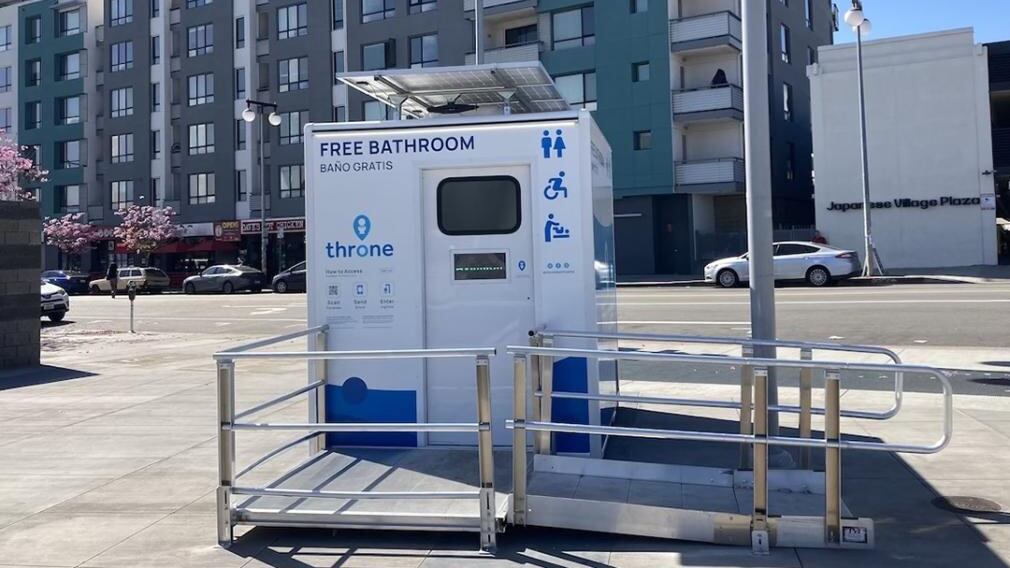 Gerardo Valerio had been looking for a bathroom in Los Angeles' Little Tokyo neighborhood for 20 minutes when he stumbled across a blue and white trailer with "FREE BATHROOM" at the top. At first, he was hesitant to enter the bathroom, which had been installed by the Washington, D.C.-based portable toilet startup Throne. To get in, he had to scan a QR code which pre-loaded a text onto his phone. After sending the text, the door would automatically slide open.