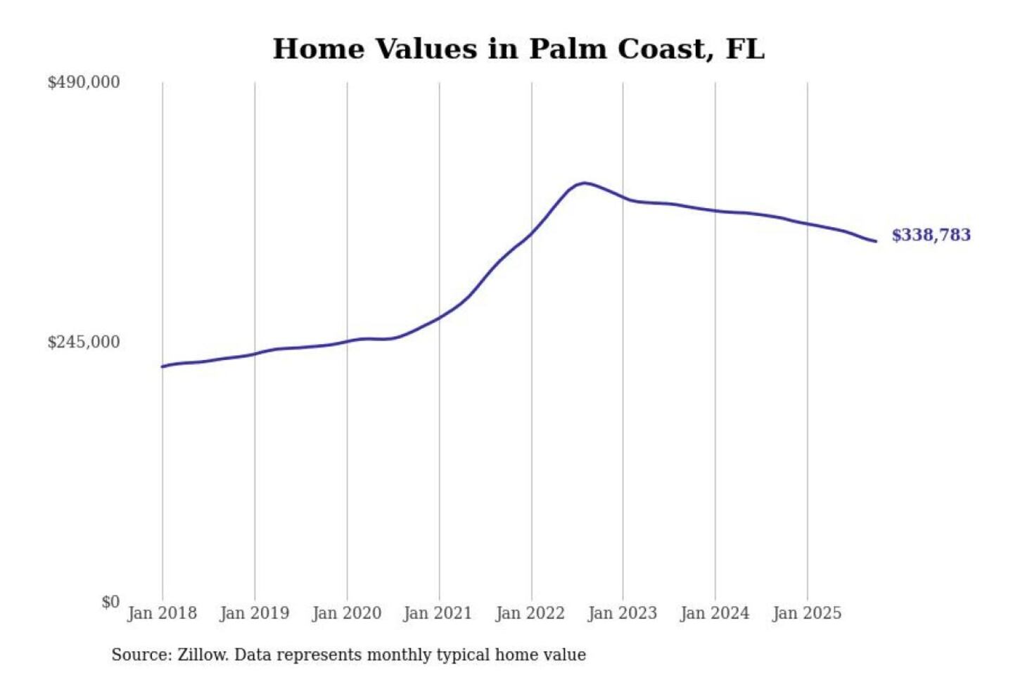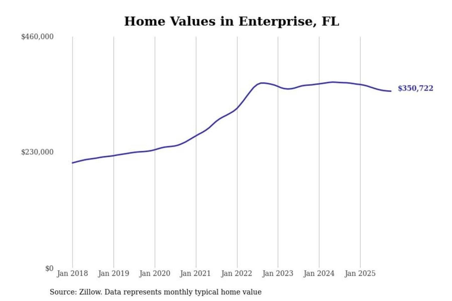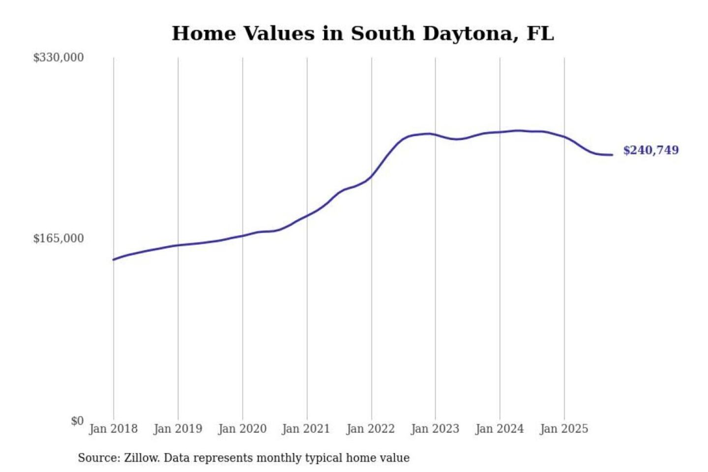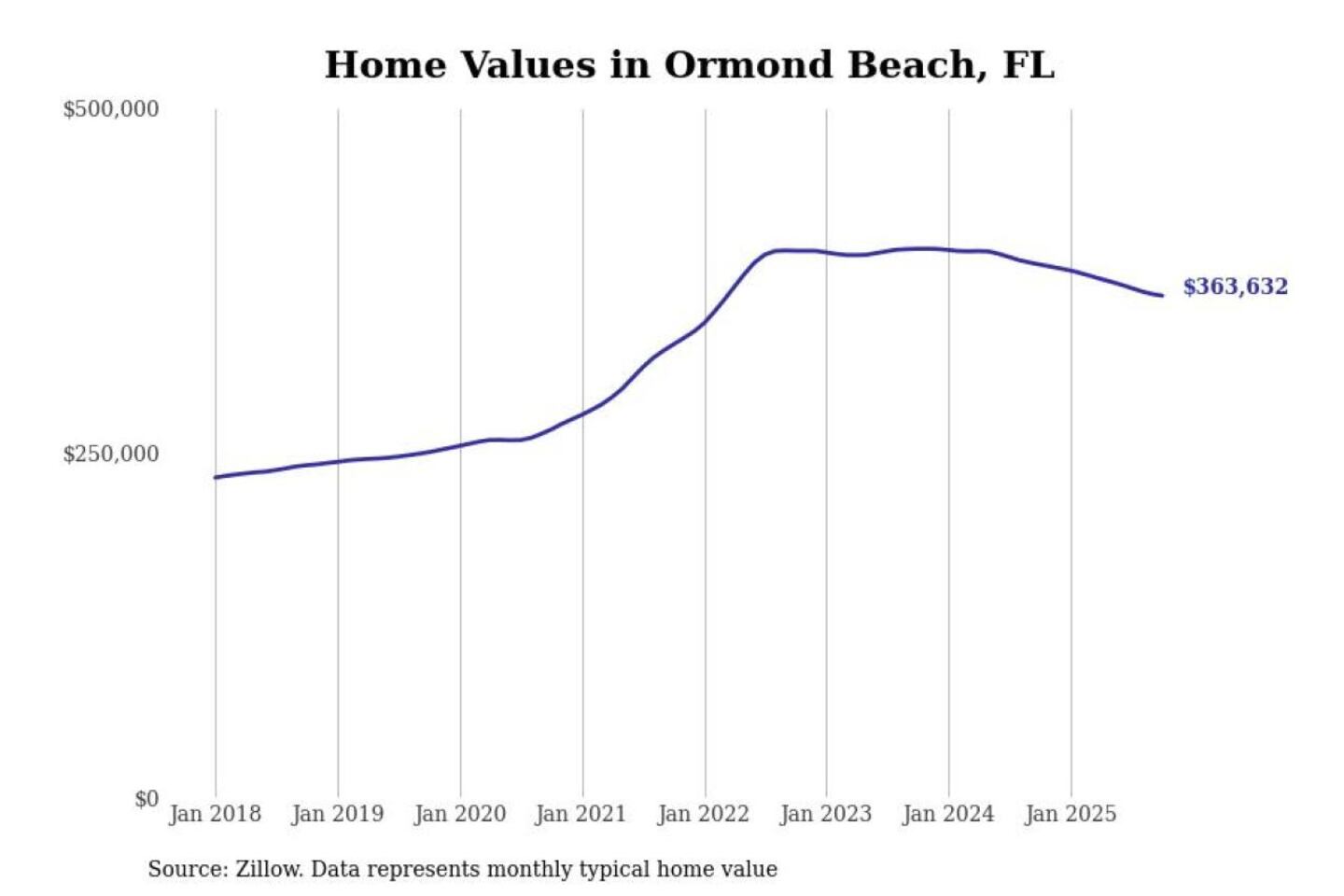Stacker compiled a list of cities with the most expensive homes in the Deltona-Daytona Beach-Ormond Beach, FL metro area using data from Zillow. Charts show the monthly typical home value since January 2018.