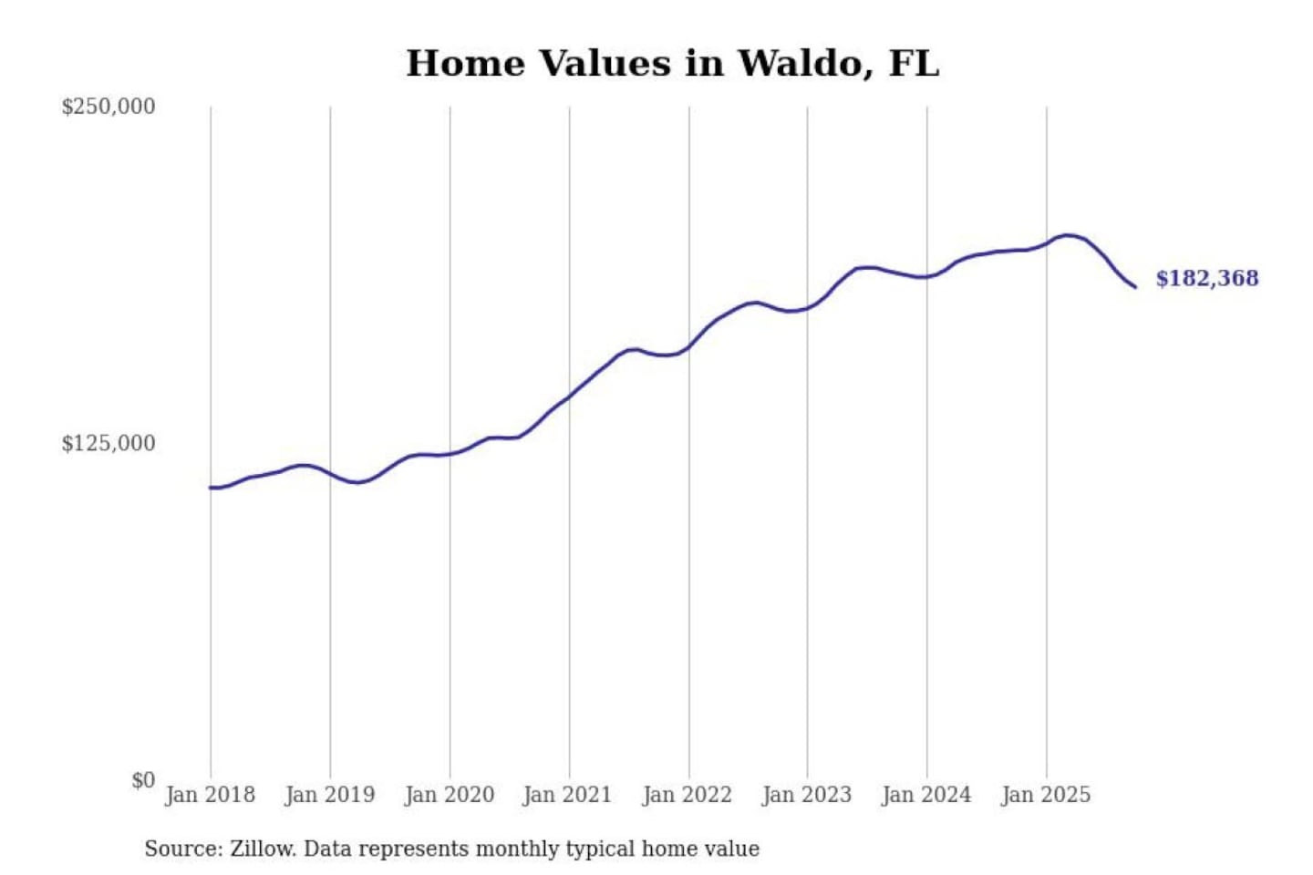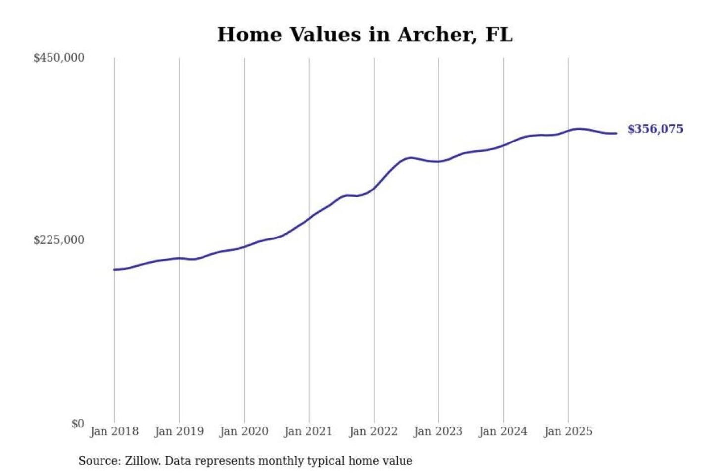 Stacker compiled a list of cities with the most expensive homes in the Gainesville, FL metro area using data from Zillow. Charts show the monthly typical home value since January 2018.