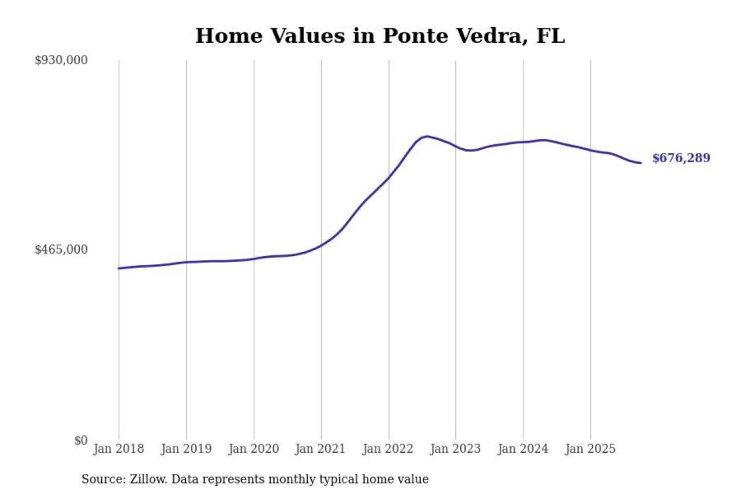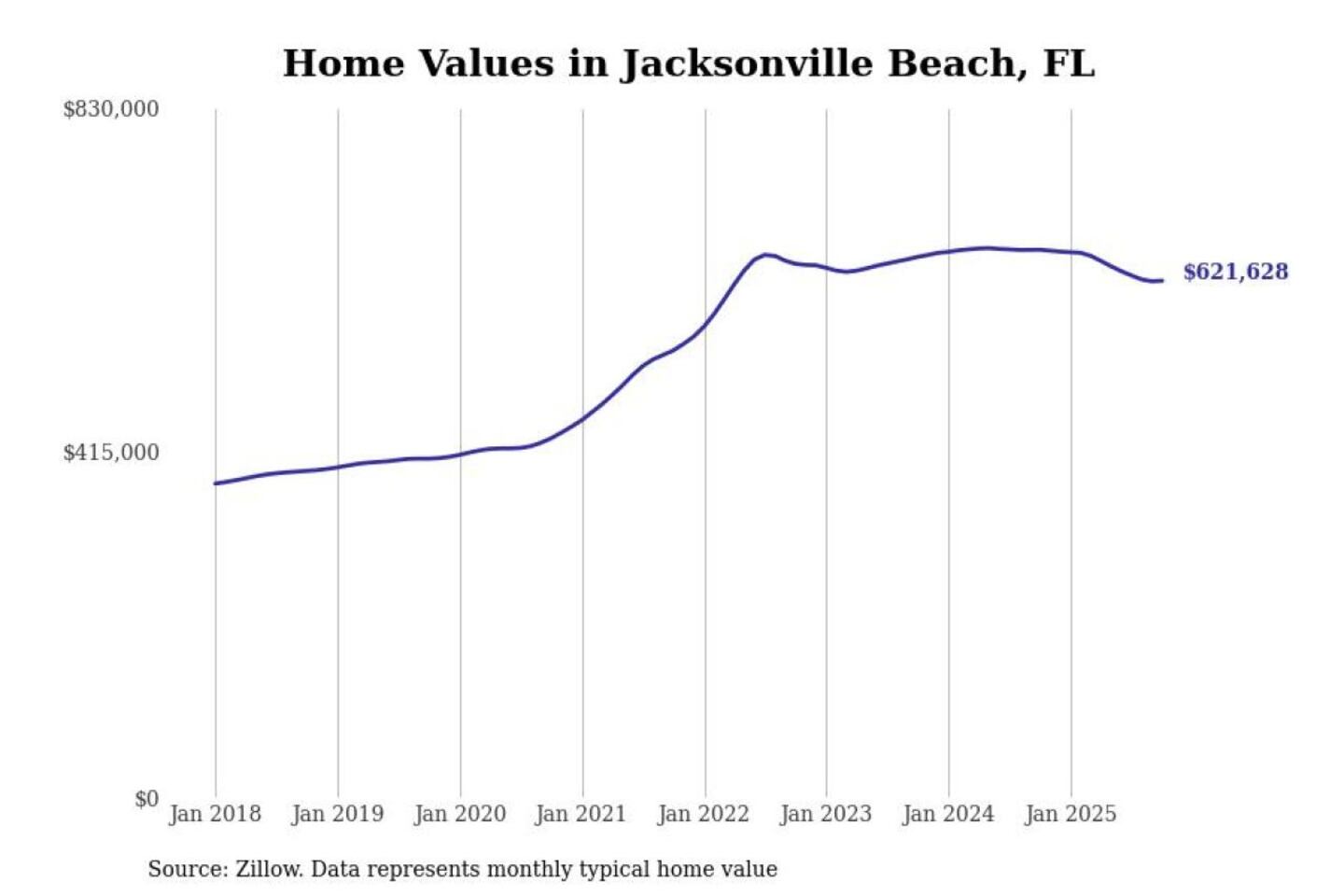 Stacker compiled a list of cities with the most expensive homes in the Jacksonville, FL metro area using data from Zillow. Charts show the monthly typical home value since January 2018.