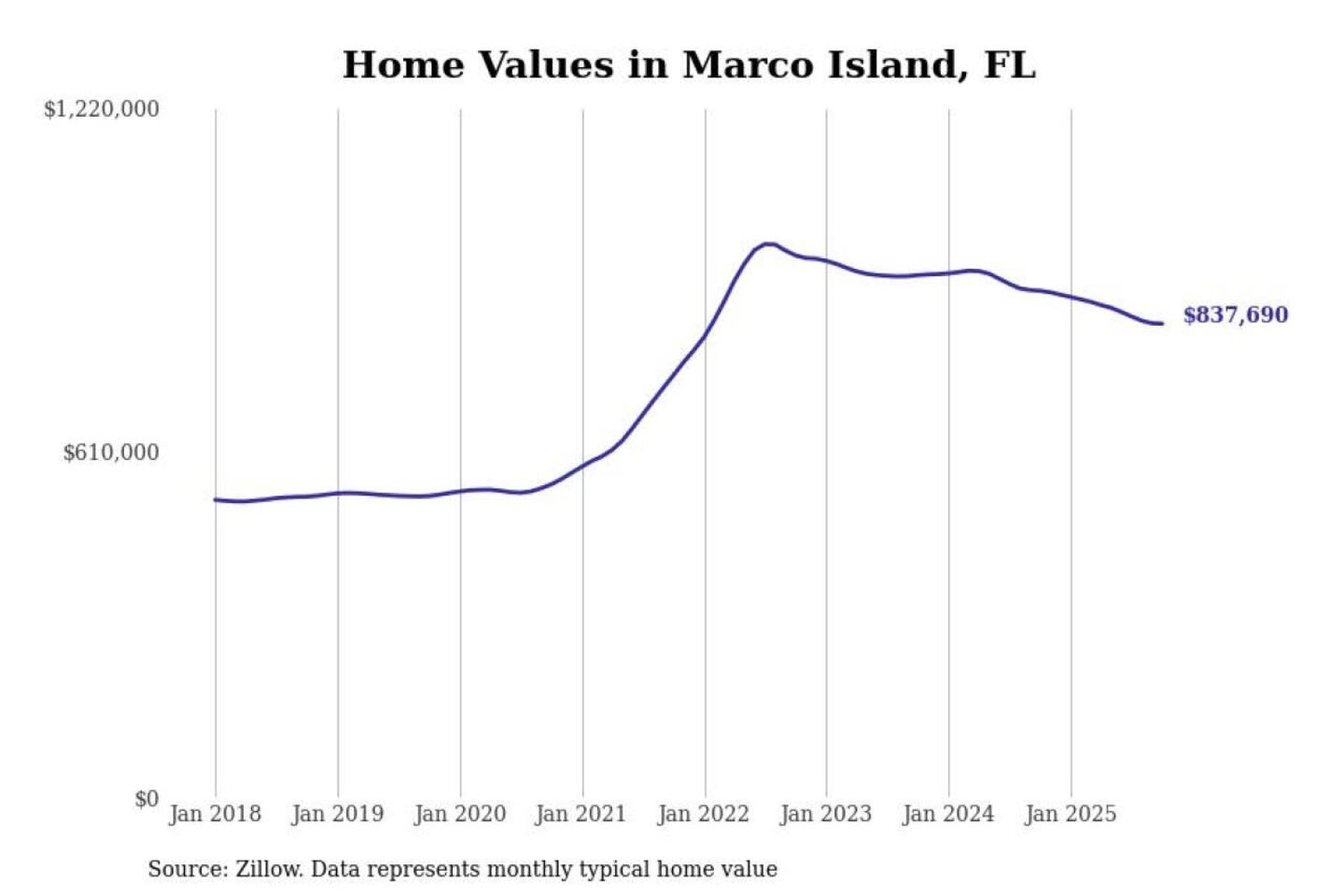 Stacker compiled a list of cities with the most expensive homes in the Naples-Marco Island, FL metro area using data from Zillow. Charts show the monthly typical home value since January 2018.