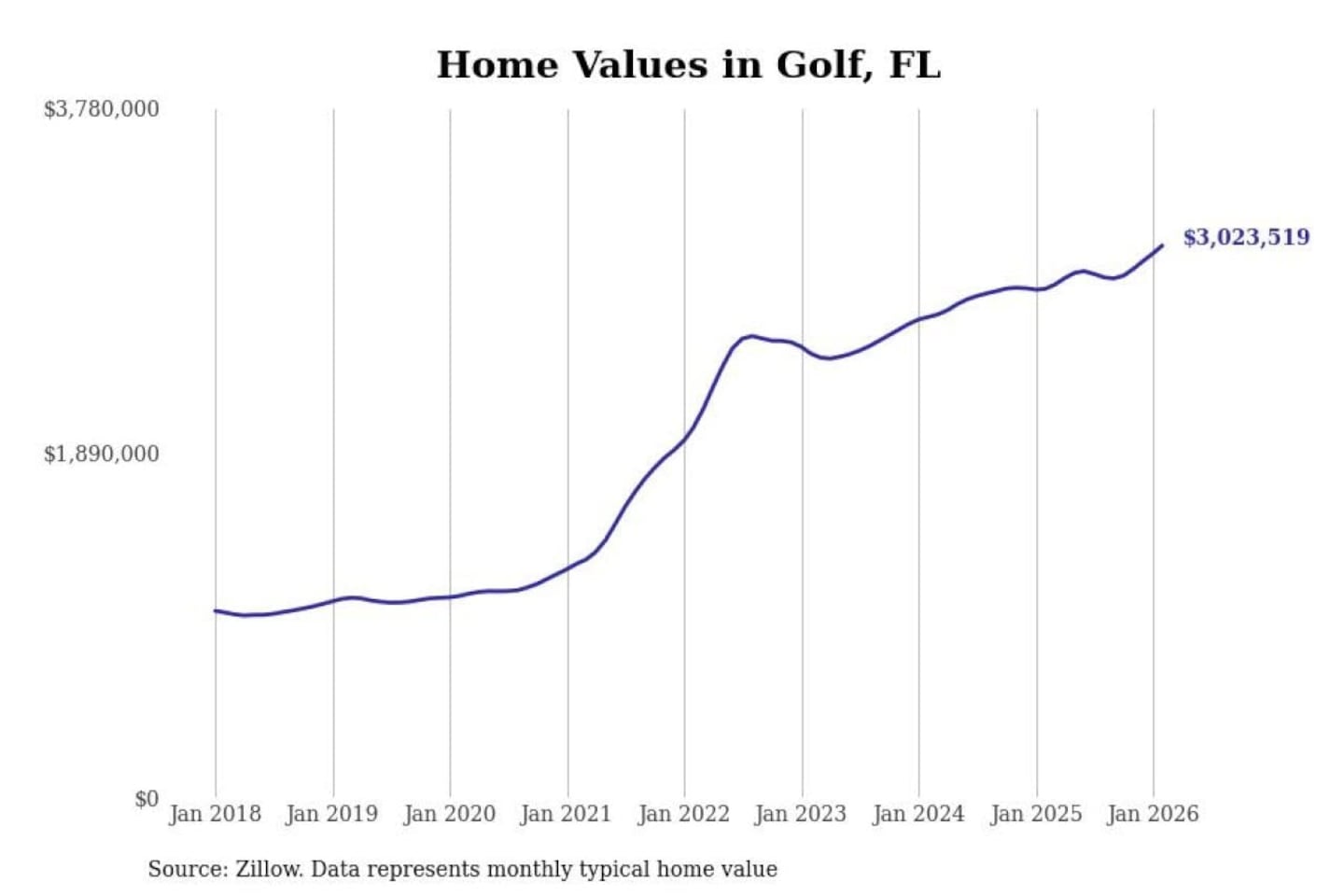 - Typical home value: $3,023,519