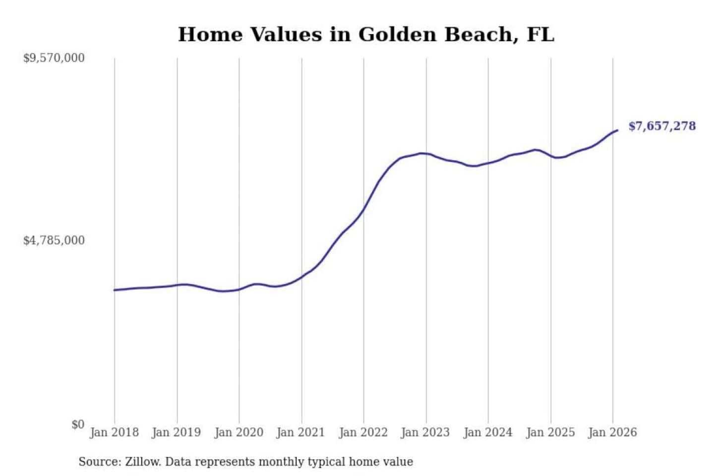 - Typical home value: $7,657,278