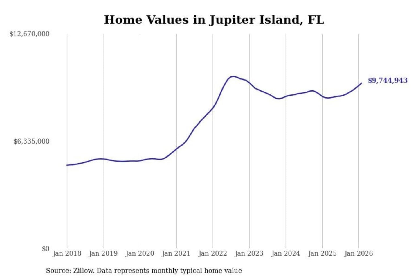 - Typical home value: $9,744,943