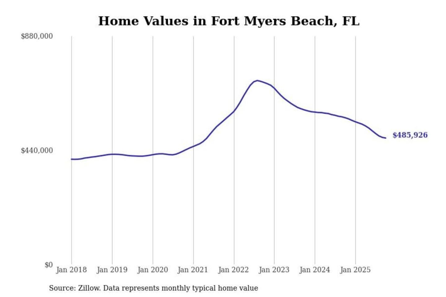 Stacker compiled a list of cities with the most expensive homes in the Cape Coral metro area using data from Zillow. Charts show the monthly typical home value since January 2018. All 14 cities and towns with data available were included in the list.