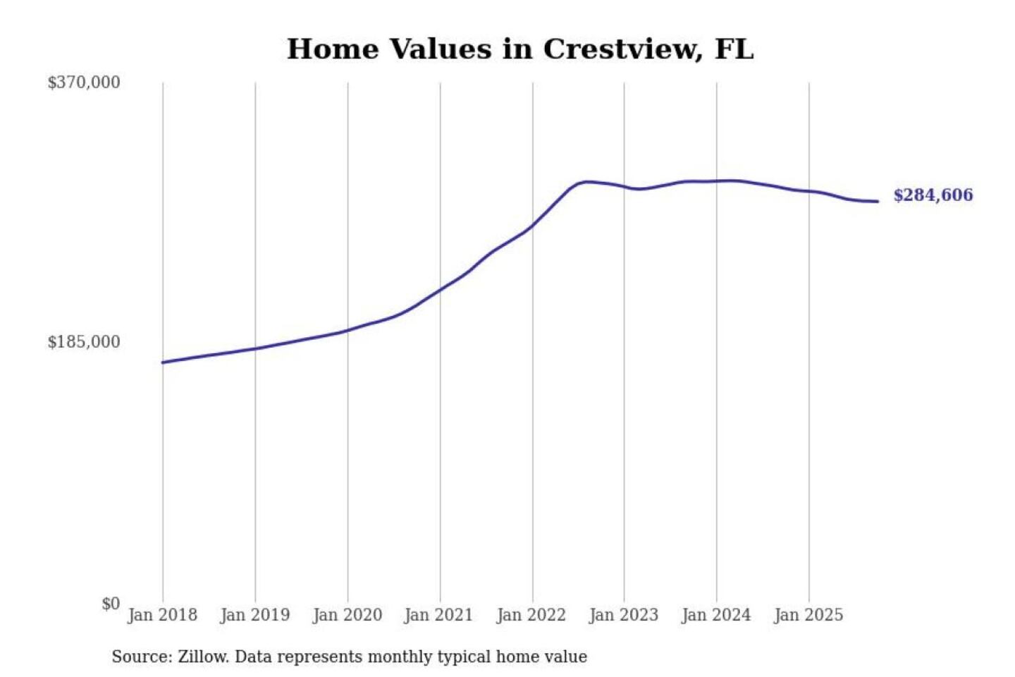 Stacker compiled a list of cities with the most expensive homes in the Crestview metro area using data from Zillow. Charts show the monthly typical home value since January 2018. All 19 cities and towns with data available were included in the list.
