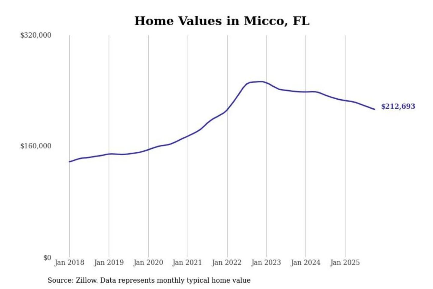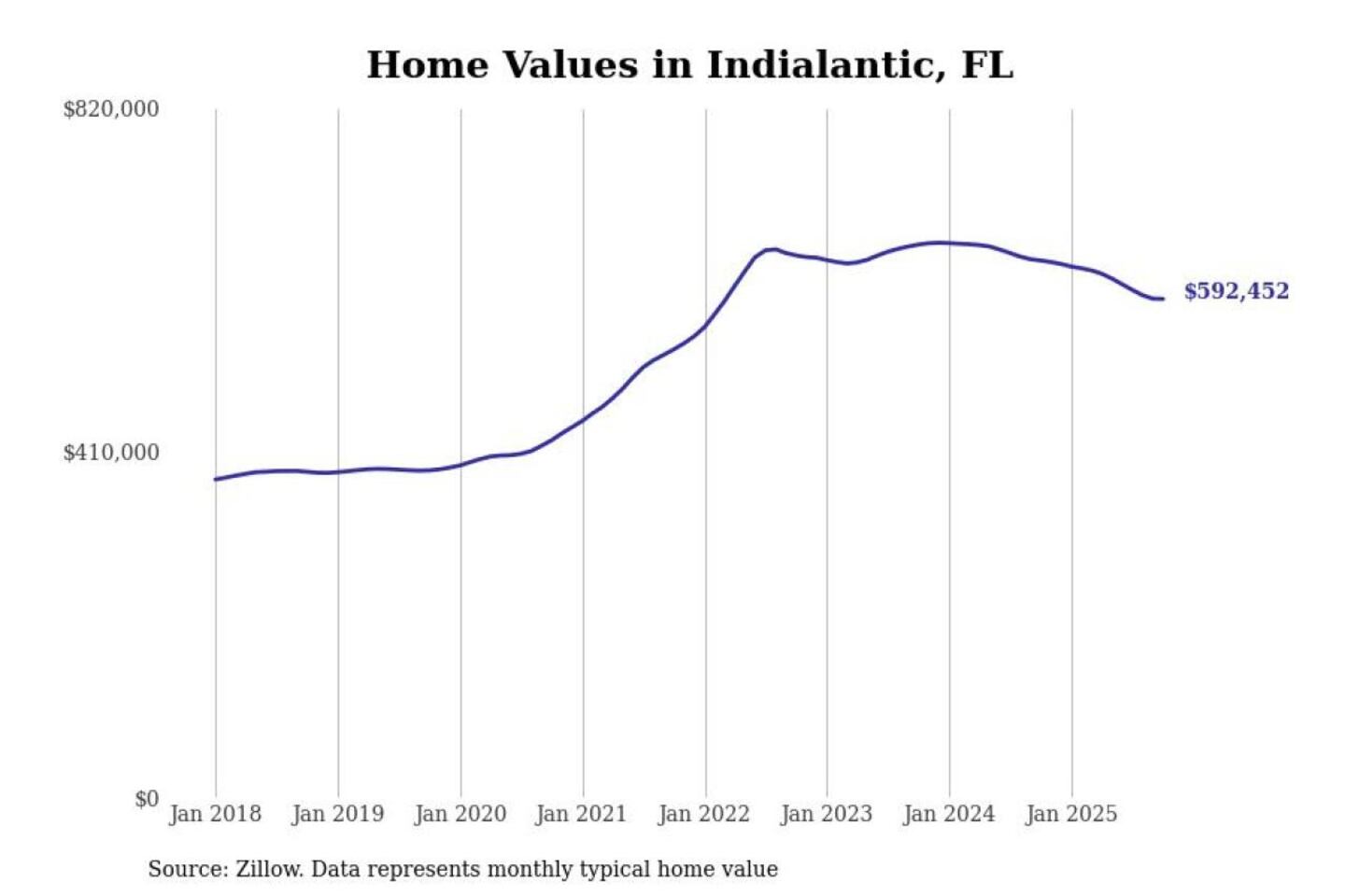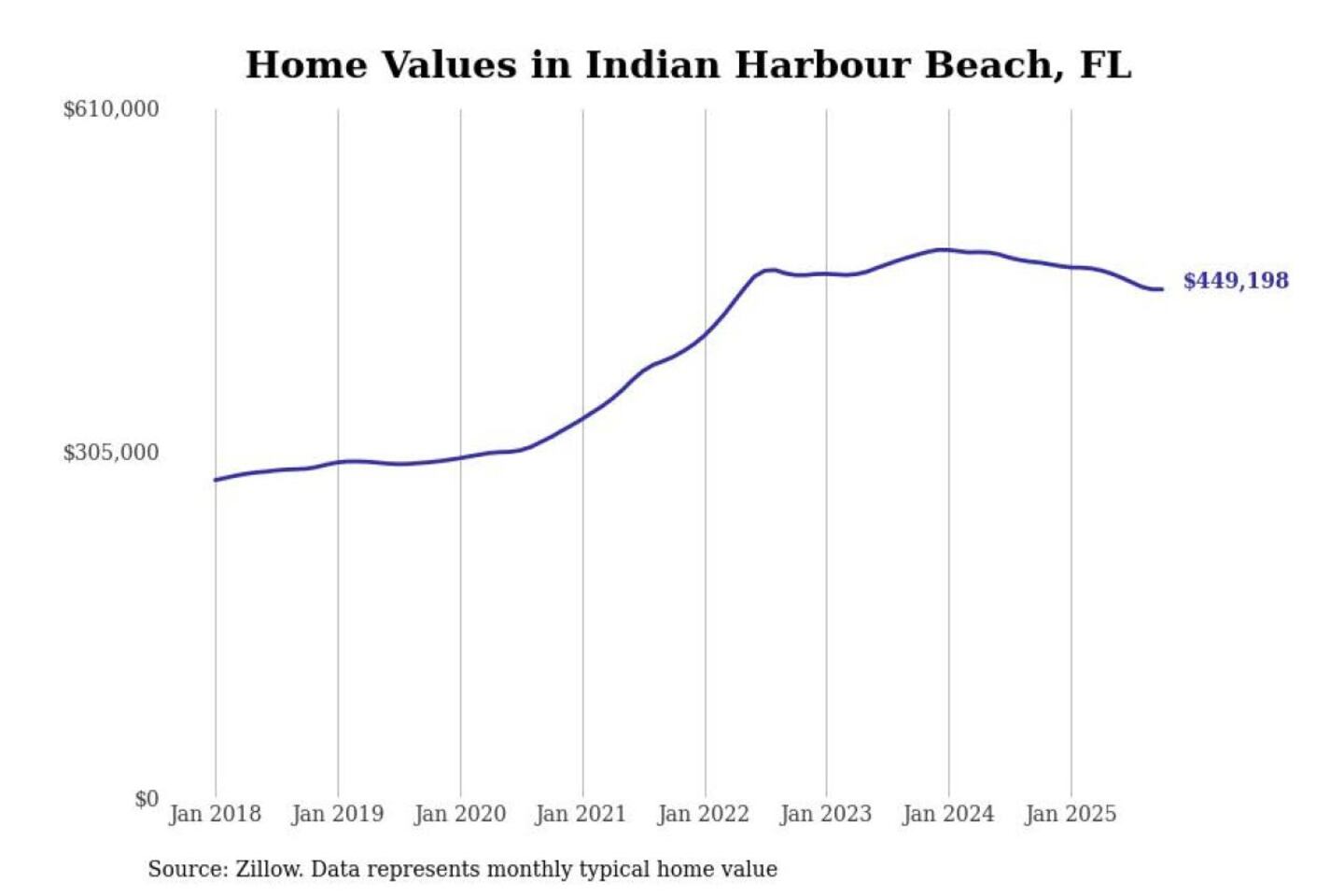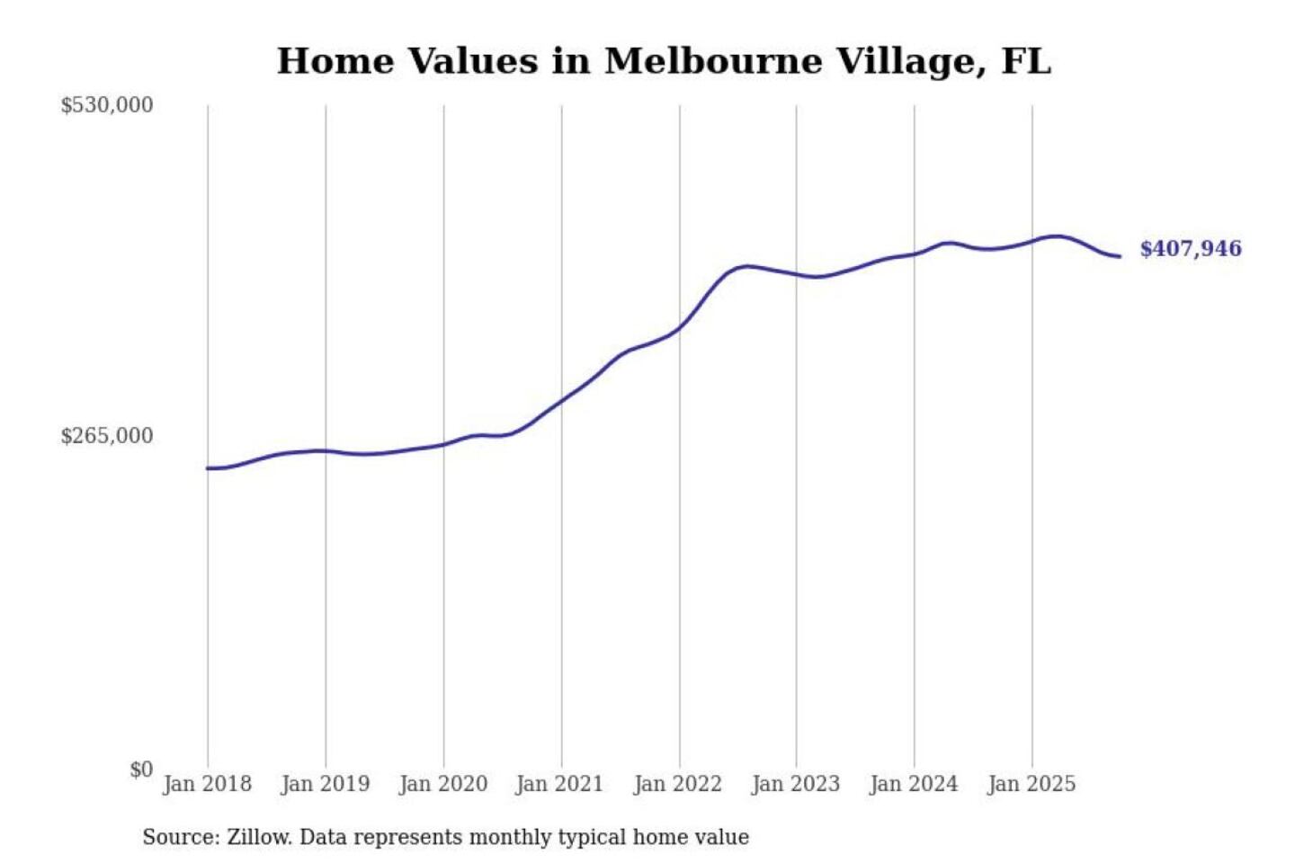Stacker compiled a list of cities with the most expensive homes in the Palm Bay metro area using data from Zillow. Charts show the monthly typical home value since January 2018. All 19 cities and towns with data available were included in the list.
