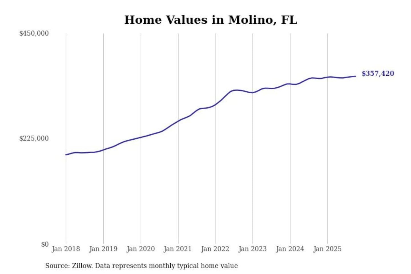 Stacker compiled a list of cities with the most expensive homes in the Pensacola metro area using data from Zillow. Charts show the monthly typical home value since January 2018. All 10 cities and towns with data available were included in the list.