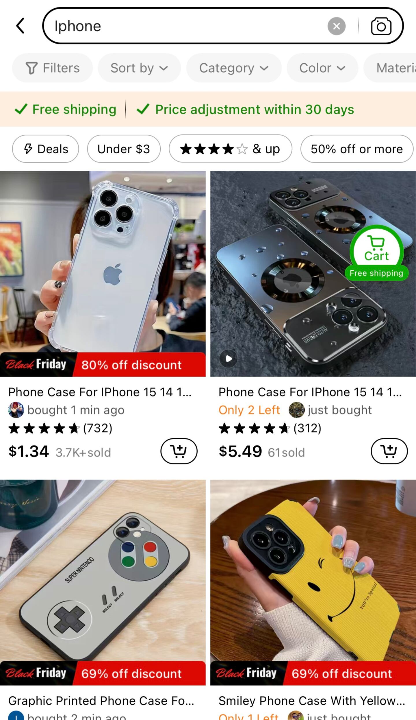 I also found iPhone cases on Temu, some as cheap as $1.34. Most were lower than $6.