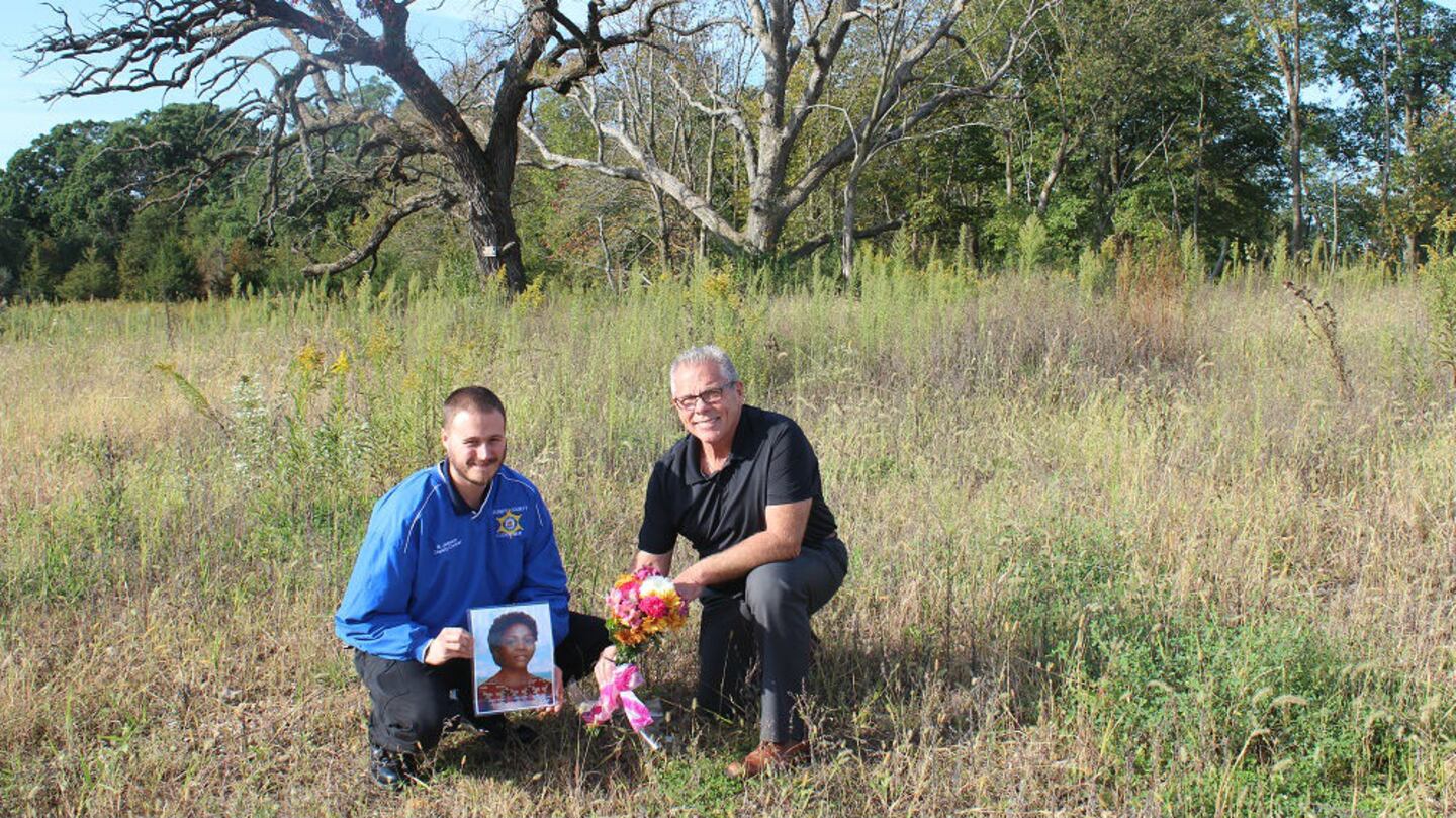 Callahan and his chief deputy coroners, Christina Hintze-Symoniak and Brandon Johnson, went on Oct. 1, the eve of the anniversary of the farmer's gruesome discovery, to leave flowers near the spot where Jane Seneca Doe was discovered.
