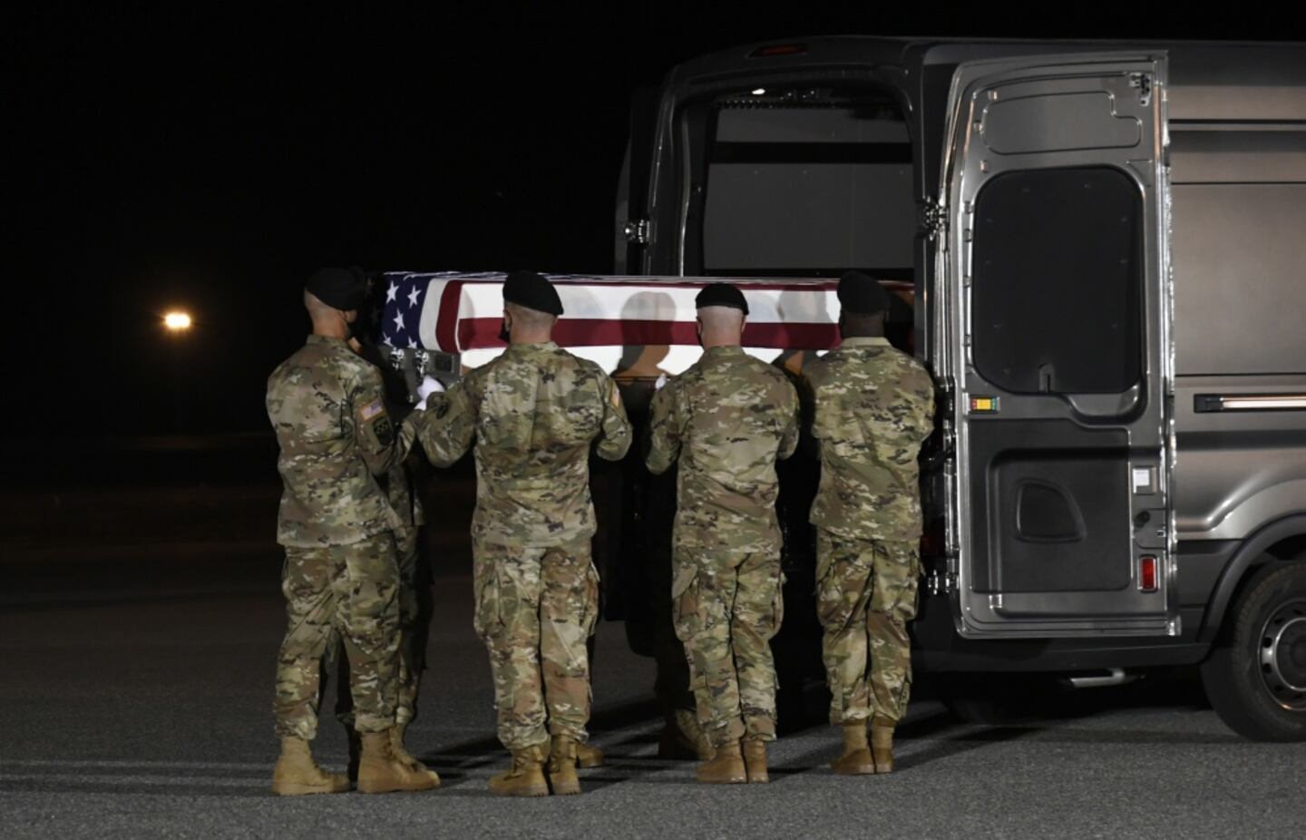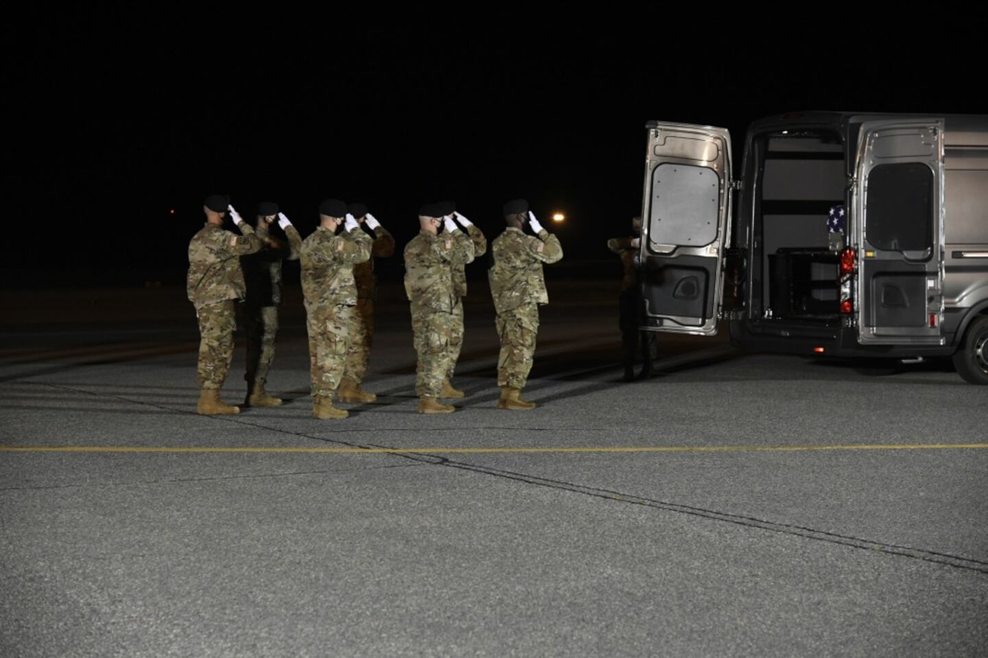 Honoring fallen soldier with dignified transfer A U.S. Army carry team transferred the remains of Spc. Nick Bravo Regules during a dignified transfer on June 27, 2020.