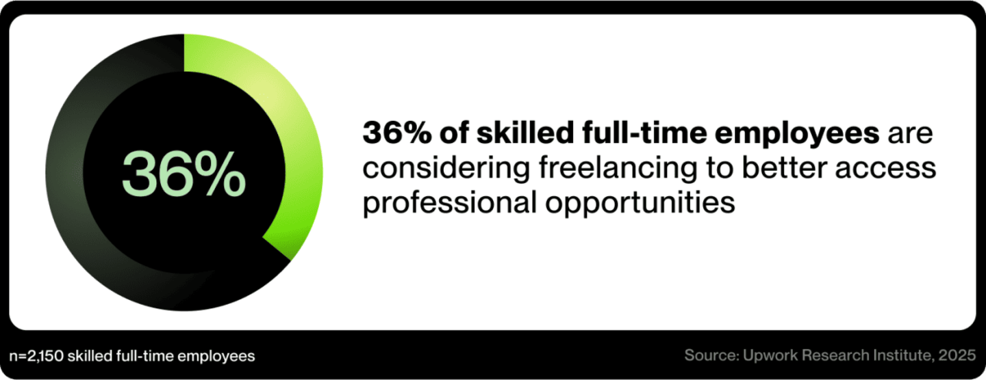 - This trend is poised to accelerate: 36% of knowledge workers who currently hold full-time jobs are considering freelancing, and Gen Z is overwhelmingly choosing independent work.