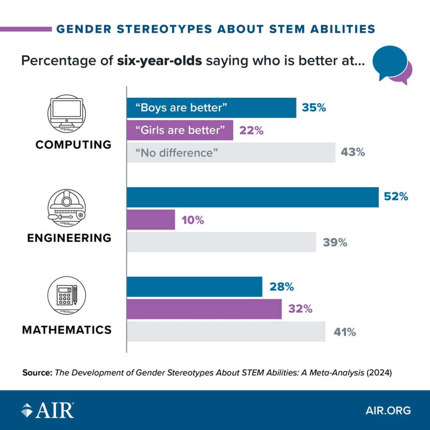 Based on a review of nearly 100 studies from 33 countries, the analysis shows that by age six, kids already perceive boys to be better than girls at computer science and engineering. Among girls, such beliefs only grow more entrenched over time.