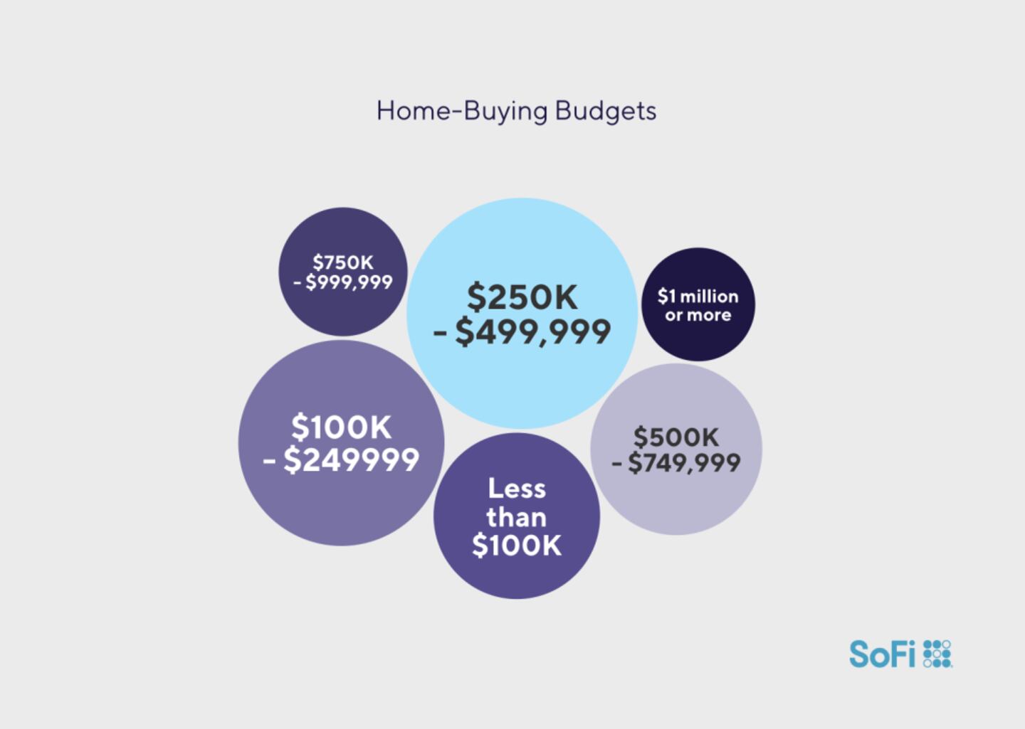 Interestingly, more than half of respondents whose home budget was $500K or higher have a household income of less than $100,000 per year. Some of these people could be relying on the sale of a first home to fund a second home and may even make a cash purchase. For the rest, an annual income of $100,000 typically equates to a home-buying budget in the neighborhood of $300,000.