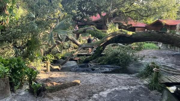 Fortunately, no alligators were harmed, and the fences and glass remained undamaged by the fallen tree.