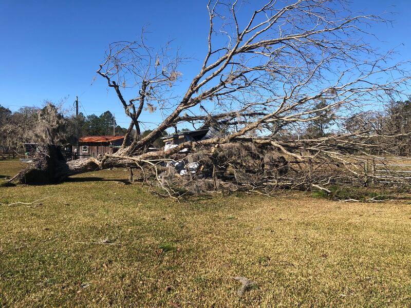 Their house was spared, but a pecan tree came crashing down onto their barn.