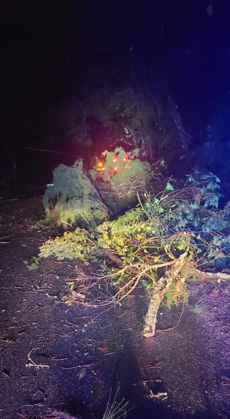 There is a heavy presence of emergency vehicles in Starke between Cherry Street and Colley Road due to downed trees from today’s storm.