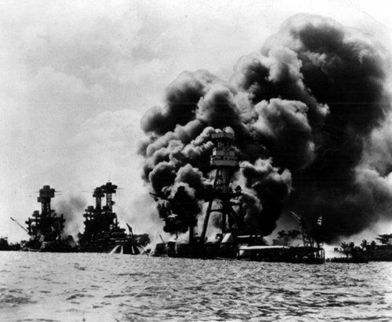 Smoke billows from the USS Arizona after the Japanese attack on Pearl Harbor on Dec. 7, 1941. The attack triggered the U.S. entry into World War II. (AP Photo/U.S. Navy, File)