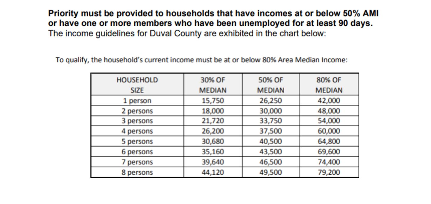 An “Eligible household” must include one or more individuals who are obligated to pay rent on a residential dwelling in Duval County and must also demonstrate all three criteria below: