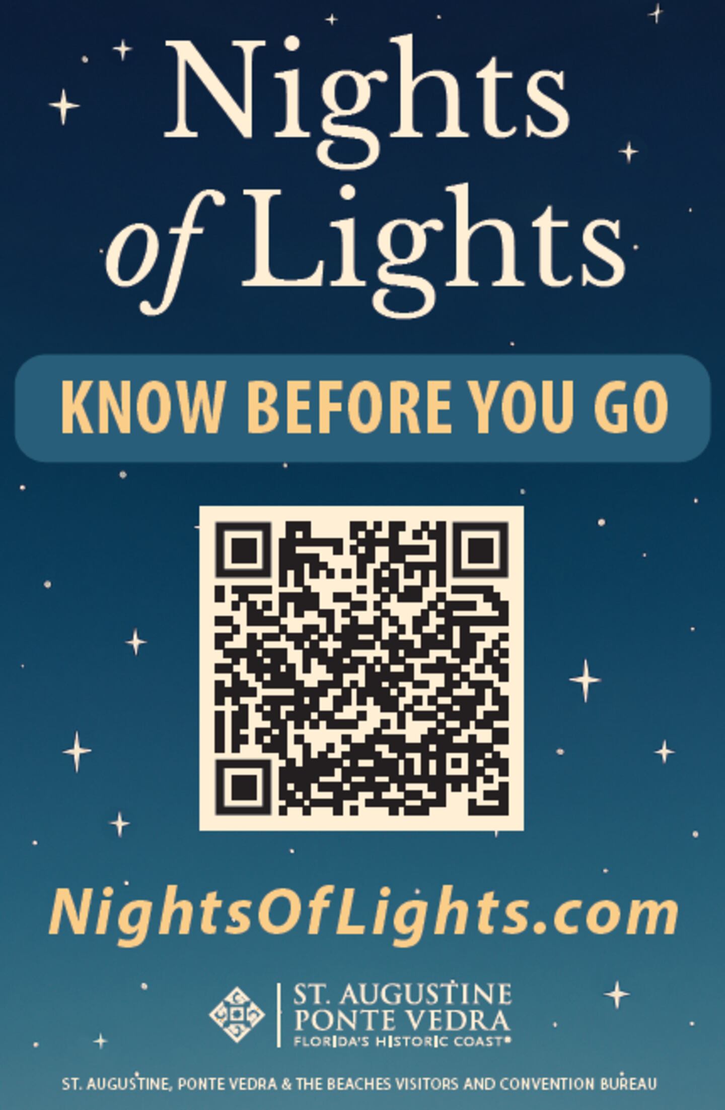 ST. AUGUSTINE, Fla — With the popular Nights of Lights event kicking off in just over two weeks, the City of St. Augustine is announcing the “Know Before You Go” campaign. “Know Before You Go” is being launched by the St. Augustine, Ponte Vedra & The Beaches Visitors & Convention Bureau, as well as a mobile app designed and developed by Visit St. Augustine.