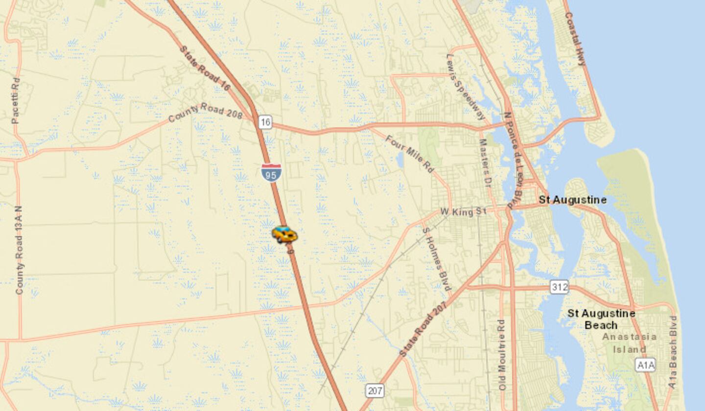 ORIGINAL STORY 6:15 a.m. - Traffic is being detoured around a crash on Interstate 95 between state roads 16 and 207 in St. Johns County.