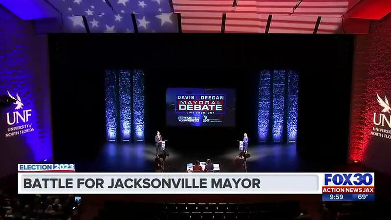 JACKSONVILLE, Fla. — The candidates for Jacksonville Mayor exchanged pleasantries and agreed over their love of Peanut M&M’s. But on nearly every issue facing Jacksonville, Donna Deegan and Daniel Davis had sharp disagreement and often sparred with each other’s claims during a lively forum Tuesday morning.