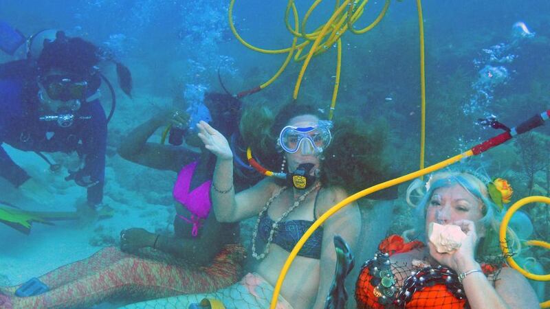 The divers and snorkelers, many dressed as mermaids and sea creatures, enjoyed music played through waterproof speakers dangling from boats floating above the Florida Keys National Marine Sanctuary.