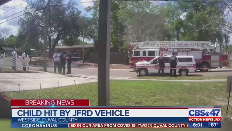 JACKSONVILLE, Fla. — UPDATE, 3/23/2020: The girl who was hit Saturday afternoon by a Jacksonville Fire and Rescue Department fire truck has died.