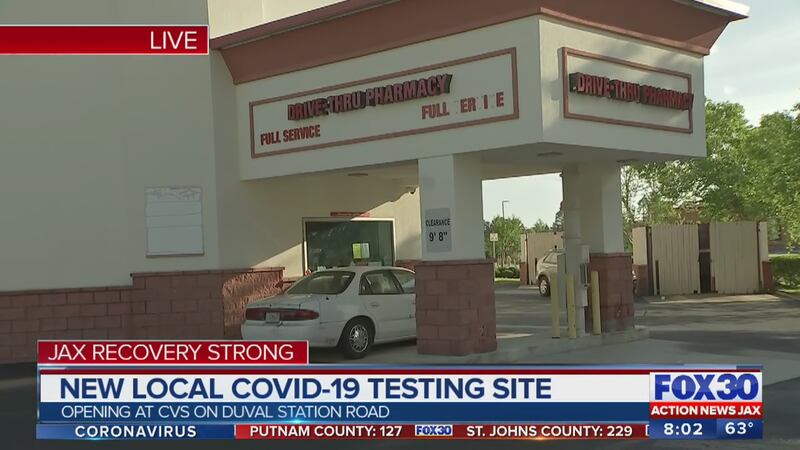 JACKSONVILLE, Fla. — CVS Health announced Thursday that they are opening a new COVID-19 drive-thru testing site in Jacksonville. The Jacksonville location at 50 Duval Station Road is one of 10 new testing sites opening across the state of Florida as a first roll-out. The company expects nearly 1,000 sites across the country by the end of the month.