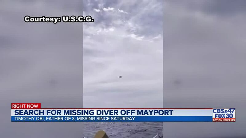 JACKSONVILLE BEACH, Fla. — 37-year-old diver Timothy Obi remains missing at sea three days after his disappearance, and search efforts continue for the loving father of three.