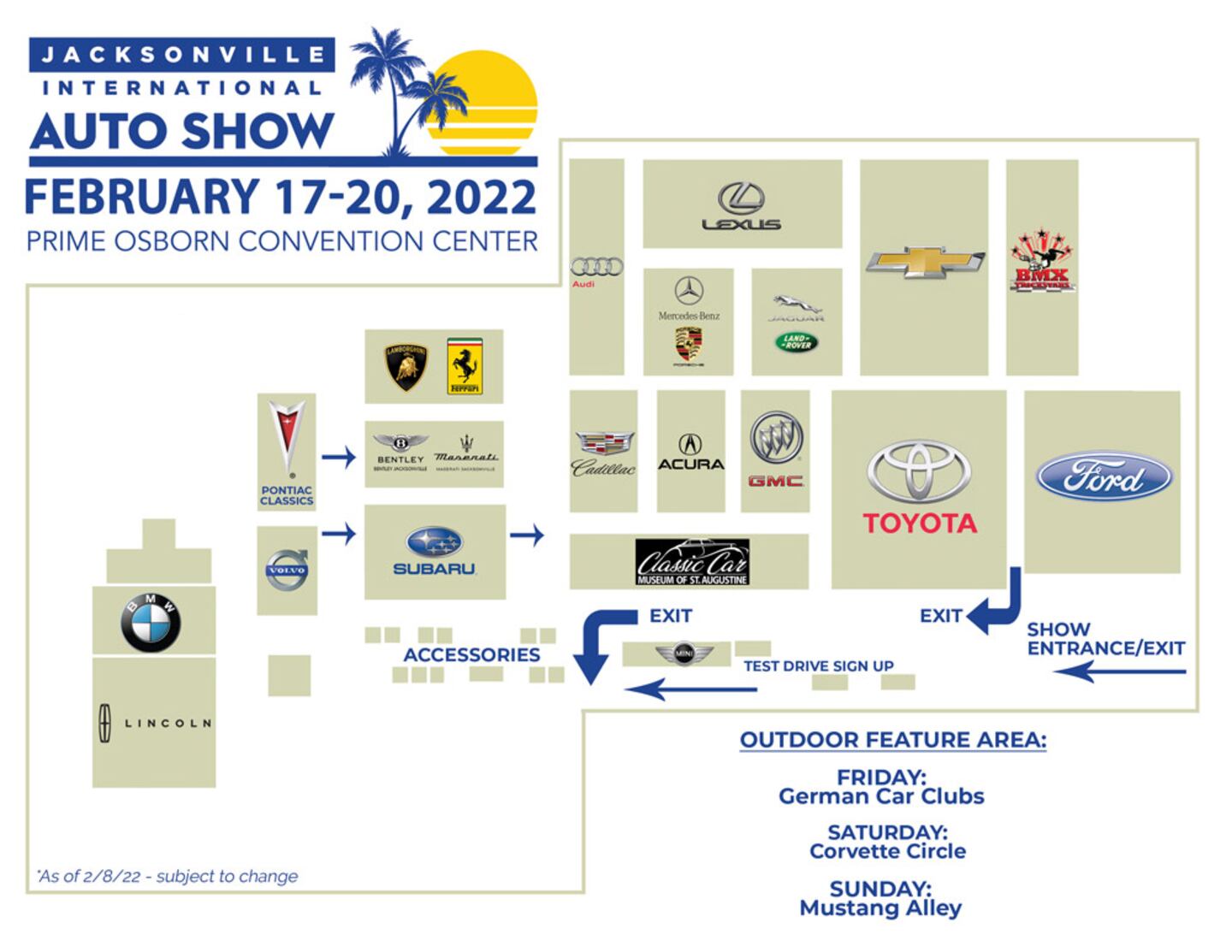 JAX Auto Show The event will take place from Thursday, Feb. 17 through Sunday, Feb. 20. at the Prime Osborn Convention Center located at 1000 Water Street. (Jacksonville International Auto Show)