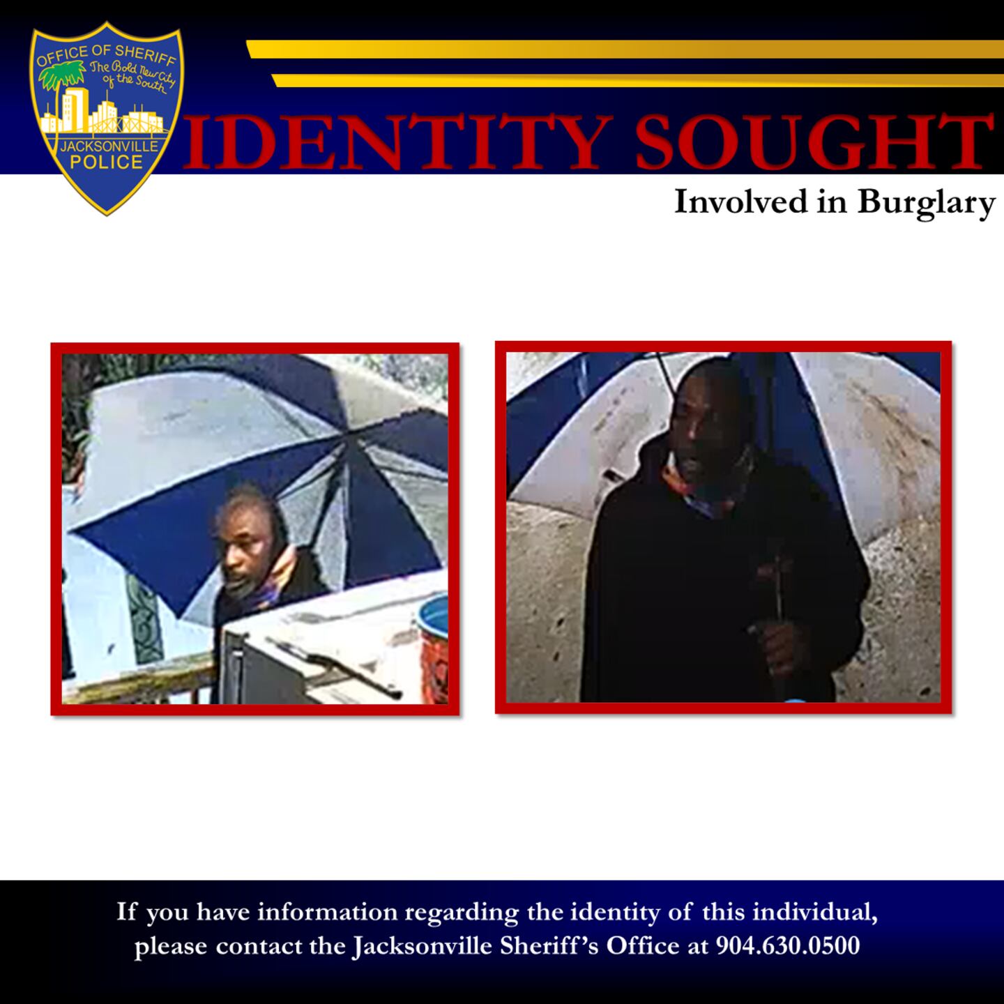 If you have any information regarding this incident, call JSO at 904-630-0500 or email JSOCrimeTips@jaxsheriff.org. To remain anonymous and receive a possible reward of up to $3,000, call Crime Stoppers at 1-866-845-TIPS (8477).