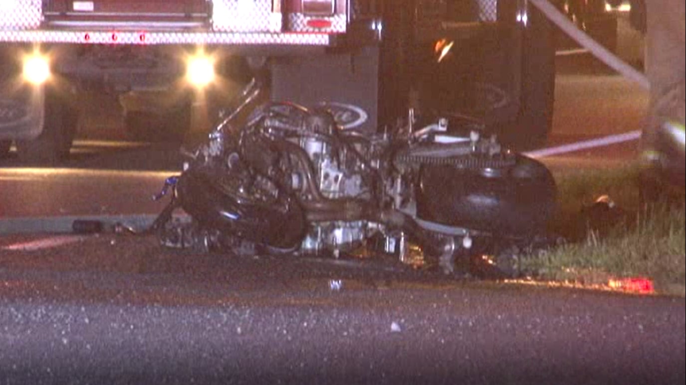 Video taken by Action News Jax shows emergency crews hosing down a wrecked motorcycle in the aftermath of the crash.