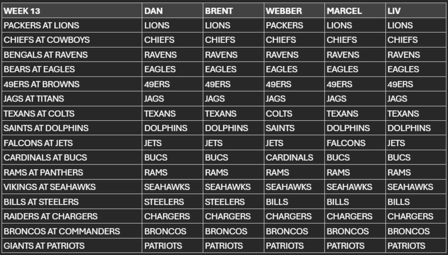Week 13 results: