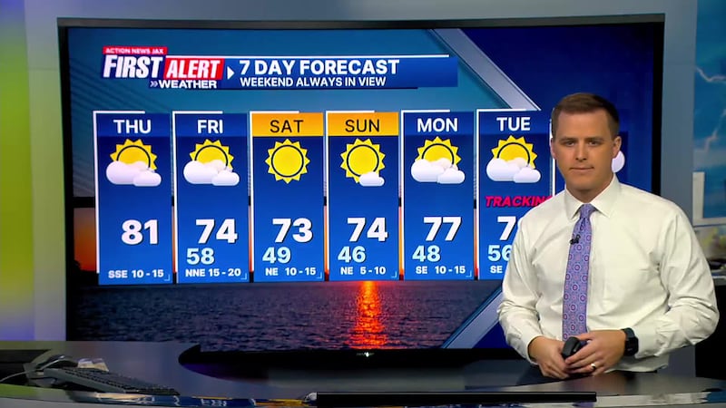 JACKSONVILLE, Fla. — Temperatures this morning are in the 60s inland and 70s along the coast.