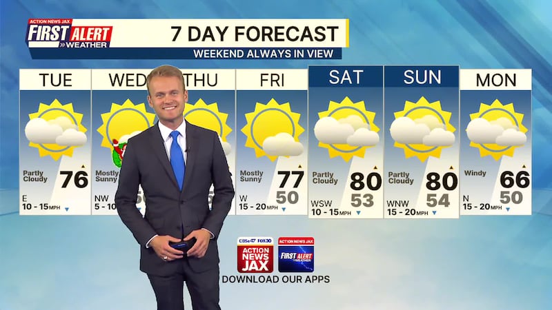 JACKSONVILLE, Fla. — This morning is quiet with temperatures mainly in the 50s under partly cloudy skies.